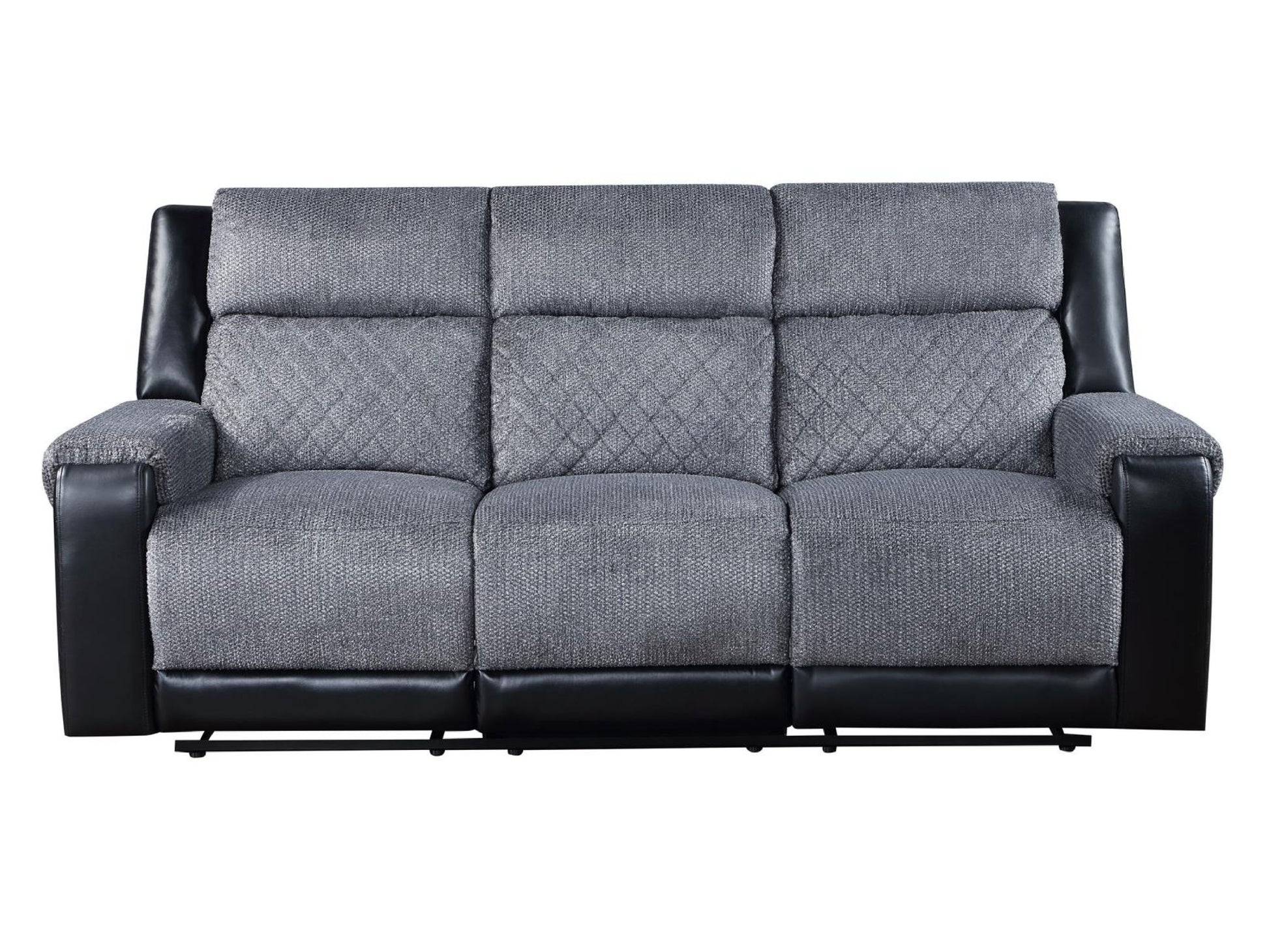 GLOBAL Dual Reclining Loveseat with Attached Padded Cushions, Supportive Headrests, Chrome Pull Tab Mechanisms, Upholstered Two Tone Fabric, Color: Dark Grey