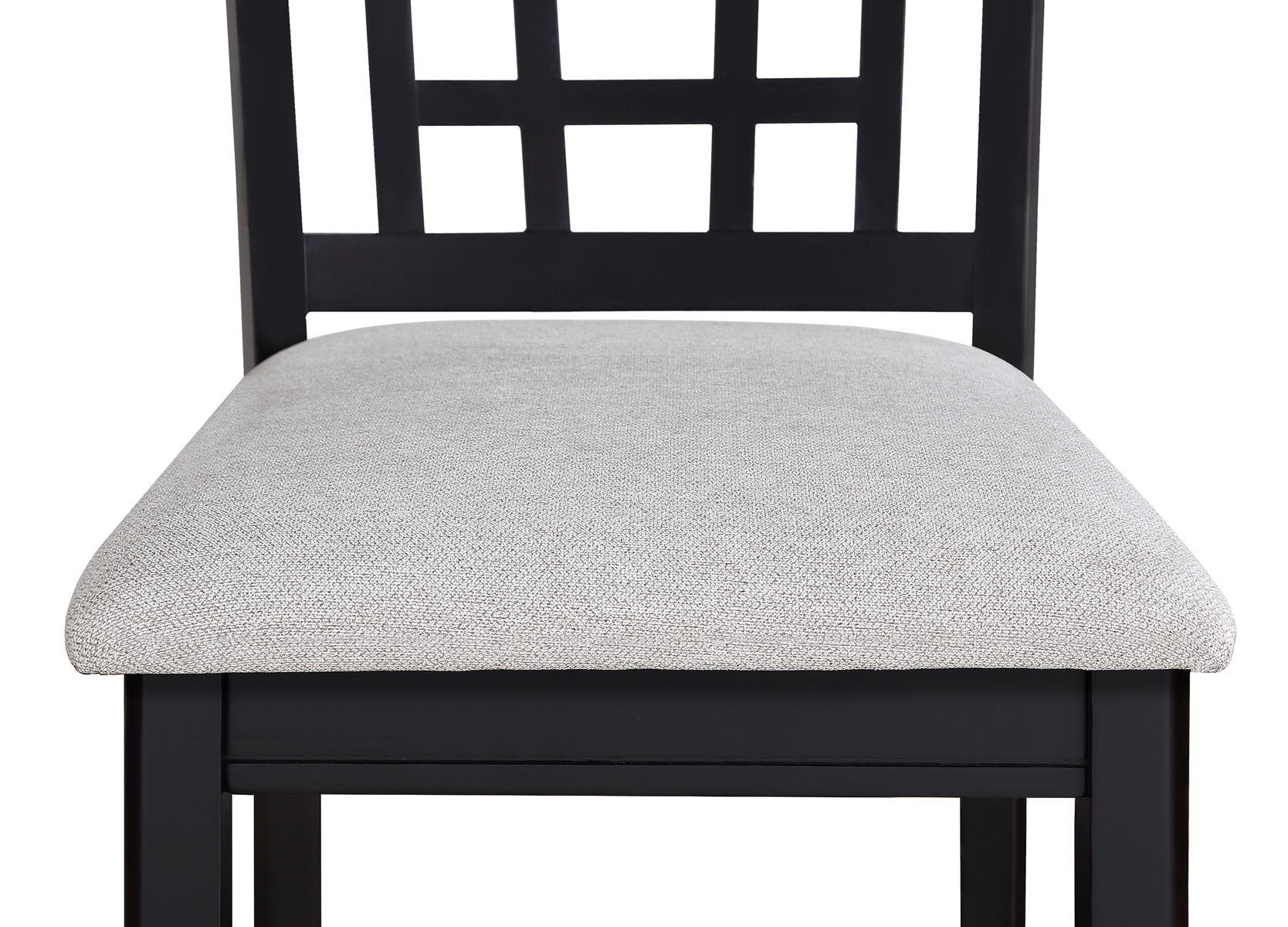 Discover practicality and style with our dining group. With a straightforward design, this set is perfect for everyday meals and casual gatherings. The grid-back chairs offer supportive seating, while the cushioned seats ensure comfort. With its under-table shelf, the table provides a handy spot for dining essentials.