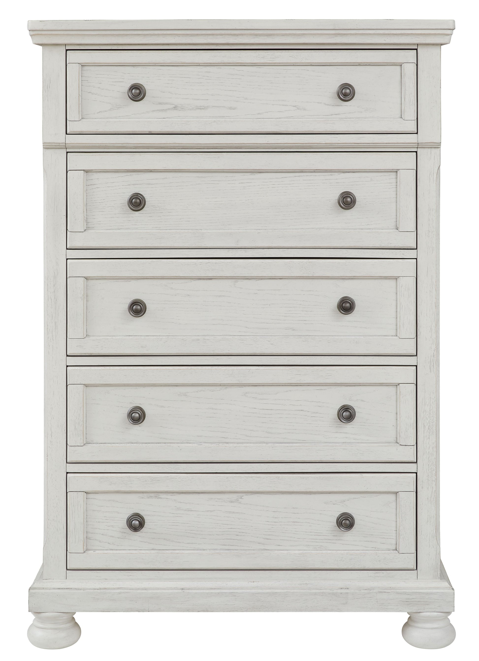 Elegant, timeless furnishings take your bedroom to the next level. Nothing does that better than this chest. The antiqued white finish with a wonderful grain texture radiates sophistication, while the dark bronze-tone hardware adds an ornate touch. A felt-lined top drawer rounds out the piece for the ultimate tasteful bedroom.